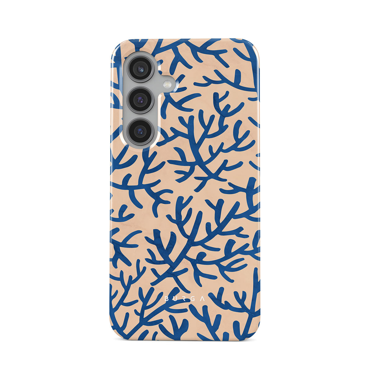 Everyone needs some vitamins and relaxing time by the sea, right? Yes! And our word-play-inspired Vitamin Sea Samsung Galaxy S24 FE phone case design is the perfect companion you must bring to the beach. Keep your phone protected in a case featuring a geometrical tree-like blue pattern. The case will surely catch an eye, and the selfies will look even more popping!
