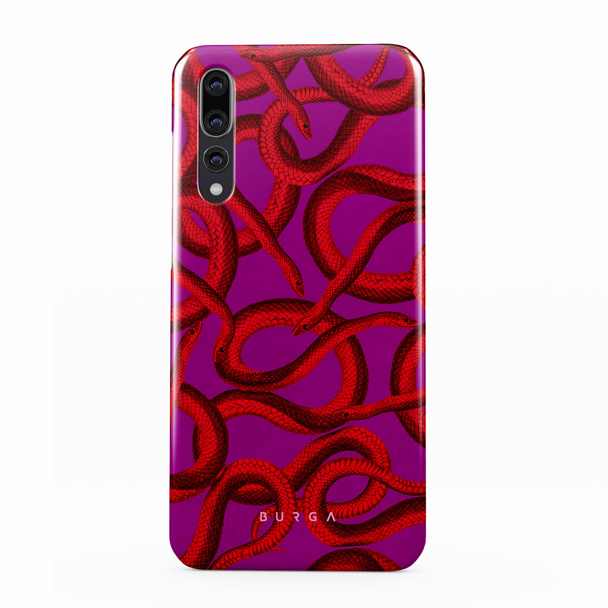 Watch Out Huawei P20 phone case design offers a fierce feel with a bright magenta colored background covered in red snakes pattern. Make a statement while protecting your phone, as this case is guaranteed to catch everyone's eye.