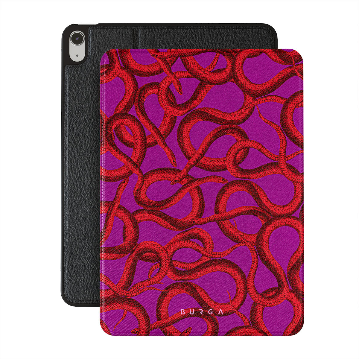 Watch Out iPad Air 11 (7th/6th Gen) folio case design offers a fierce feel with a bright magenta colored background covered in red snakes pattern. Make a statement while protecting your iPad, as this case is guaranteed to catch everyone's eye.