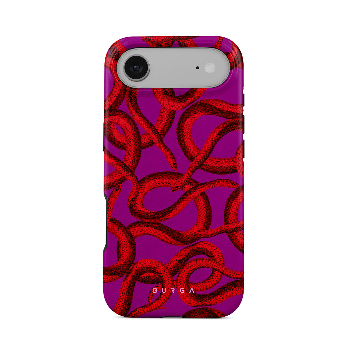 Watch Out iPhone Air phone case design offers a fierce feel with a bright magenta colored background covered in red snakes pattern. Make a statement while protecting your phone, as this case is guaranteed to catch everyone's eye.