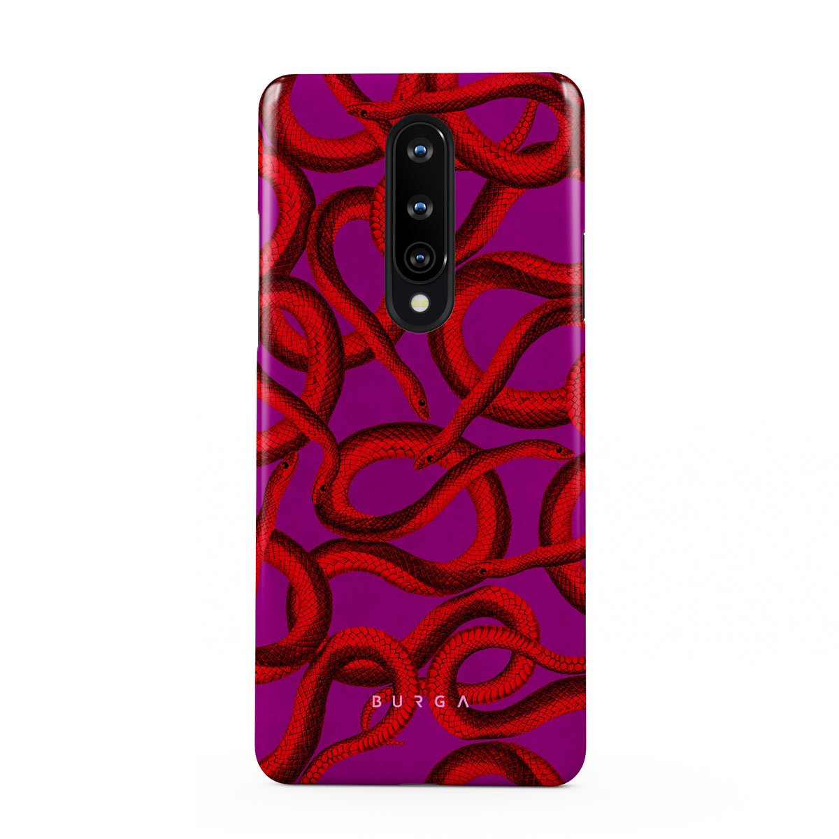 Watch Out OnePlus 8 phone case design offers a fierce feel with a bright magenta colored background covered in red snakes pattern. Make a statement while protecting your phone, as this case is guaranteed to catch everyone's eye.