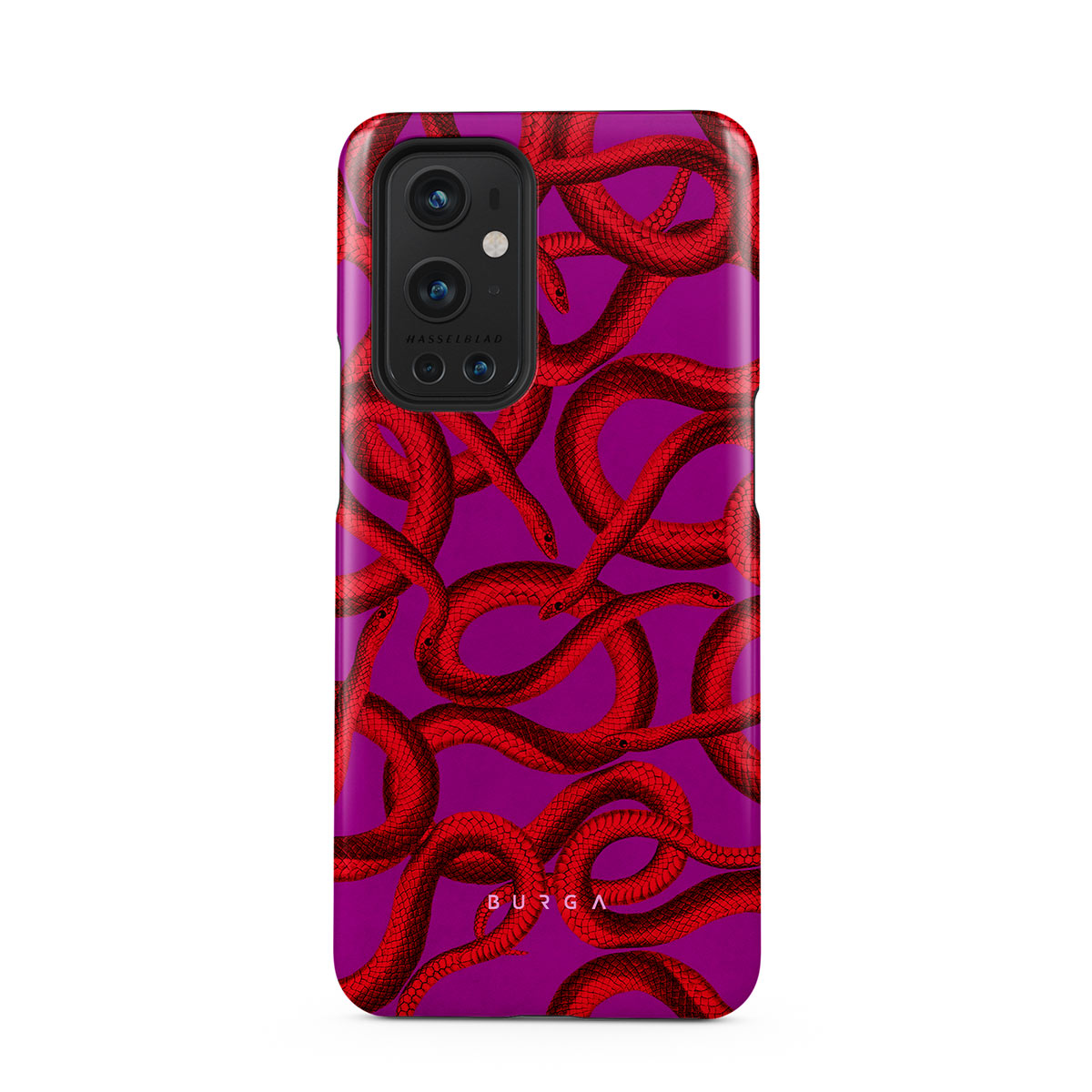 Watch Out OnePlus 9 Pro phone case design offers a fierce feel with a bright magenta colored background covered in red snakes pattern. Make a statement while protecting your phone, as this case is guaranteed to catch everyone's eye.