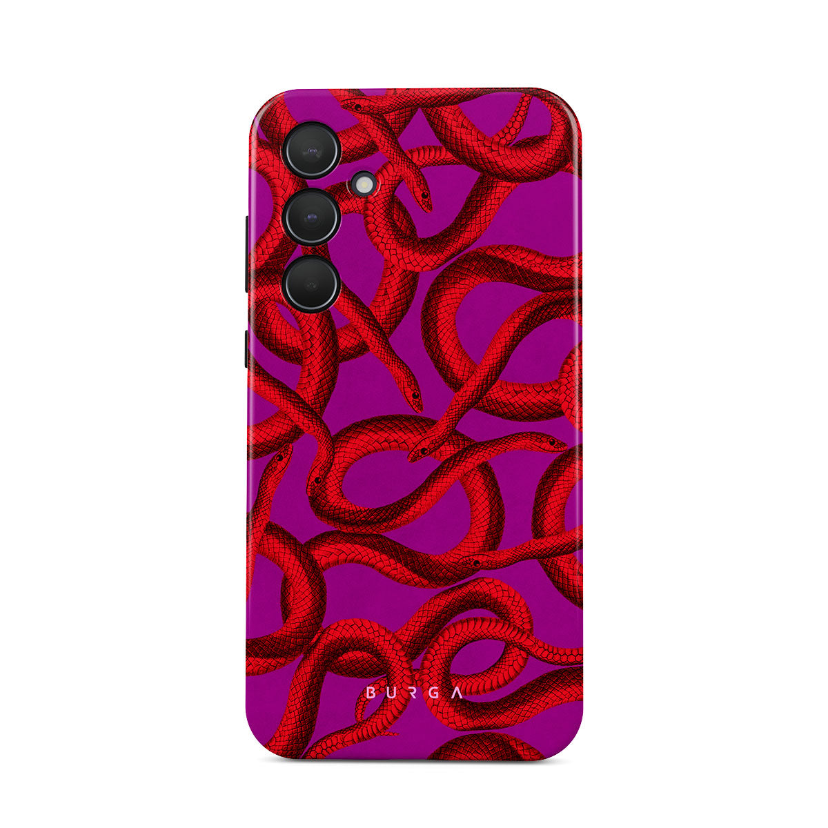 Watch Out Samsung Galaxy A51 phone case design offers a fierce feel with a bright magenta colored background covered in red snakes pattern. Make a statement while protecting your phone, as this case is guaranteed to catch everyone's eye.