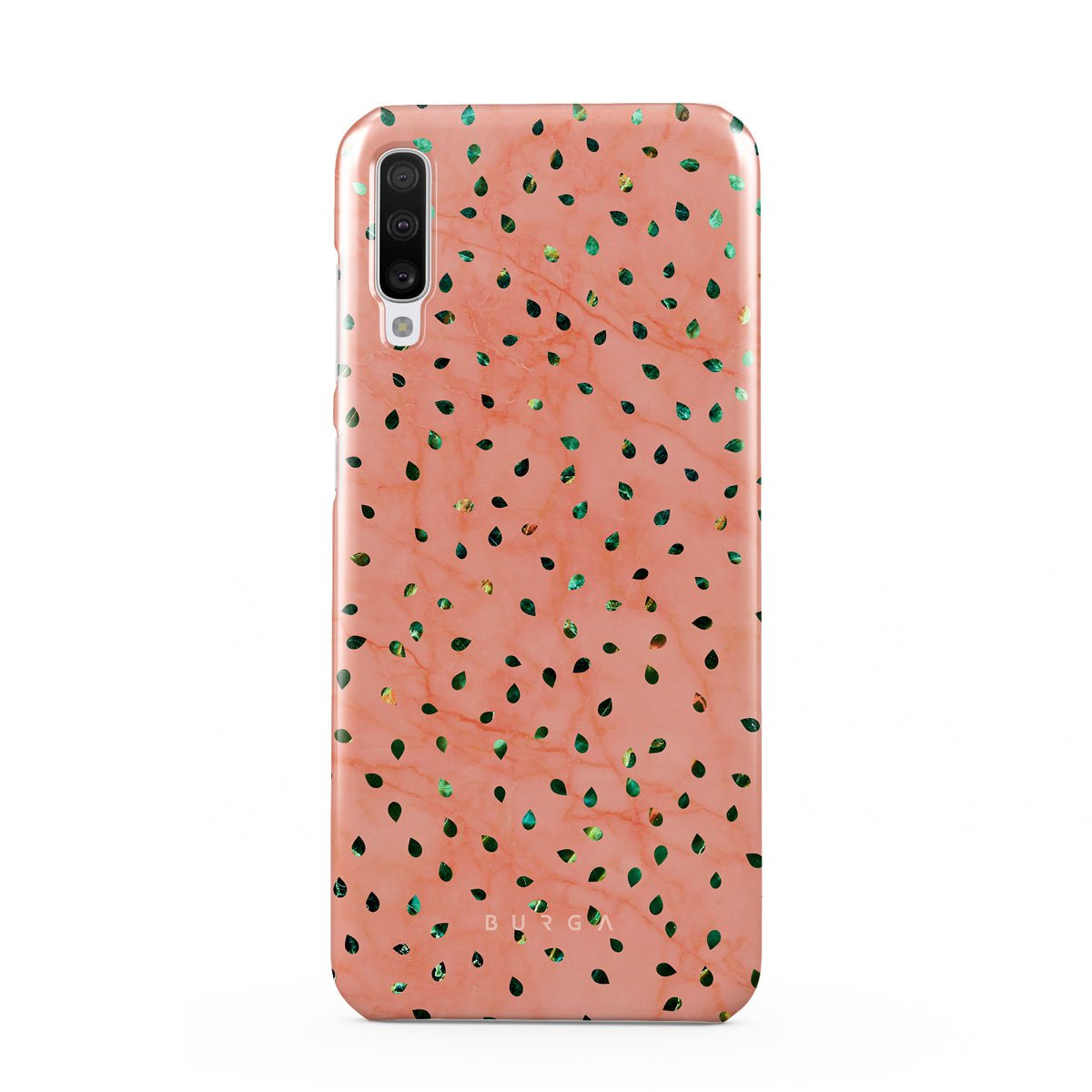 The Watermelon Shake Samsung Galaxy A70 phone case offers a playful take on design merging. The watermelon seed-like specks showcase striking tropical design fragments that add a splash of color to the fresh and breezy coral pink marble. This way, the funny protective phone cover becomes a perfect statement piece for your summer outfits.