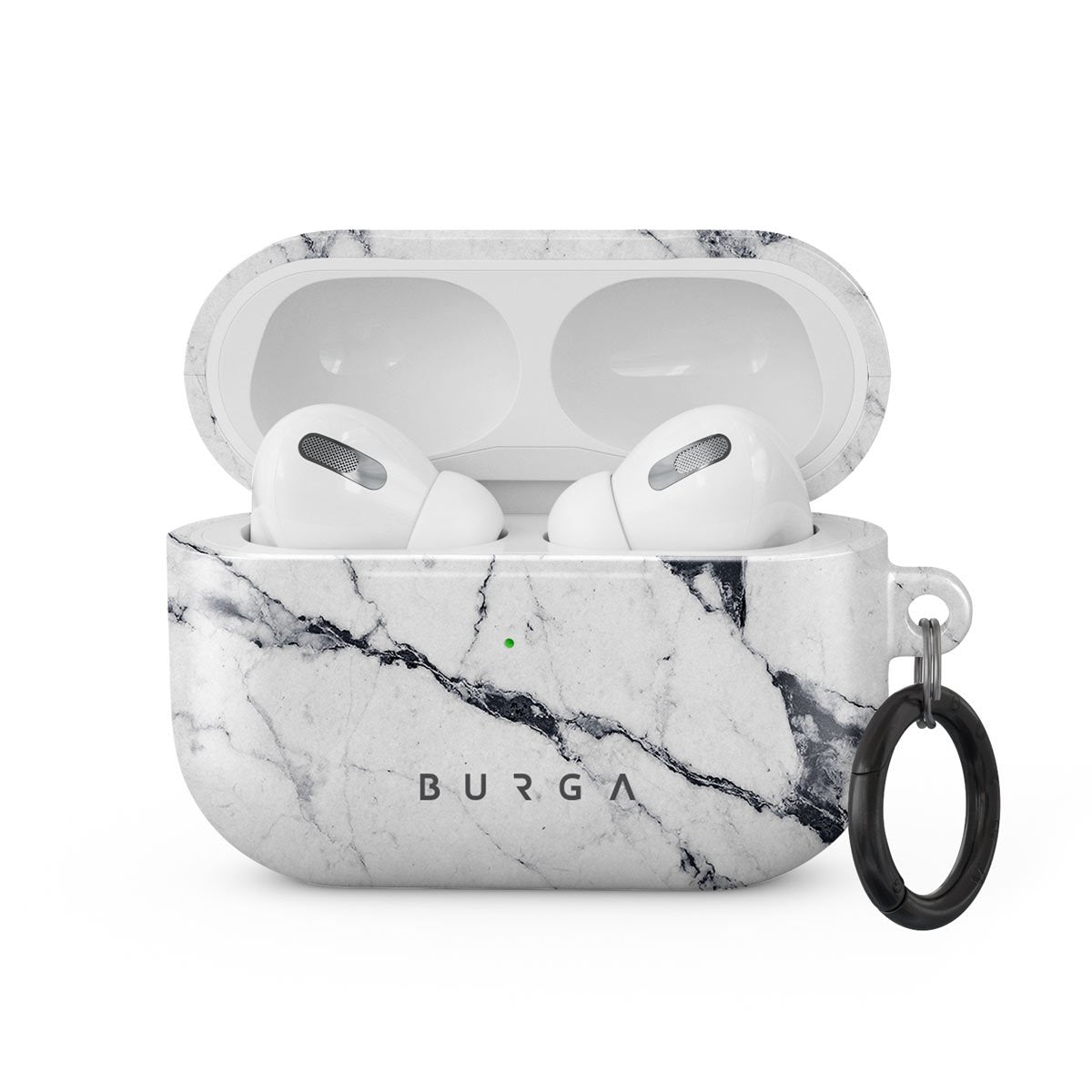 Add a timeless white marble pattern to your accessory collection with our Satin White Apple Airpods Pro case cover. Keep your AirPods safe and sound in the snug-fitting case cover that will protect them while also adding a touch of timeless classic to your wardrobe. Our case fits perfectly snug around Apple Airpods Pro . “Like a glove!” one might say. And it won’t disrupt the wireless charging capabilities of the newer model. There’s even an LED light indicator to prove it (don’t worry, wired charging still works, too). When fitted, the BURGA case will protect the delicate Apple Airpods Pro case beneath it from scratches, bumps, and drops while remaining scratch-free itself. Our signature design pattern prints are High Quality, and will never peel or fade away- thanks to our unique printing technology. And finally, a handy carabiner is there to make your life easier and more convenient: just snap it around your keys or belt loop and tackle the day head-on. Your music is right there by your side when you need it.