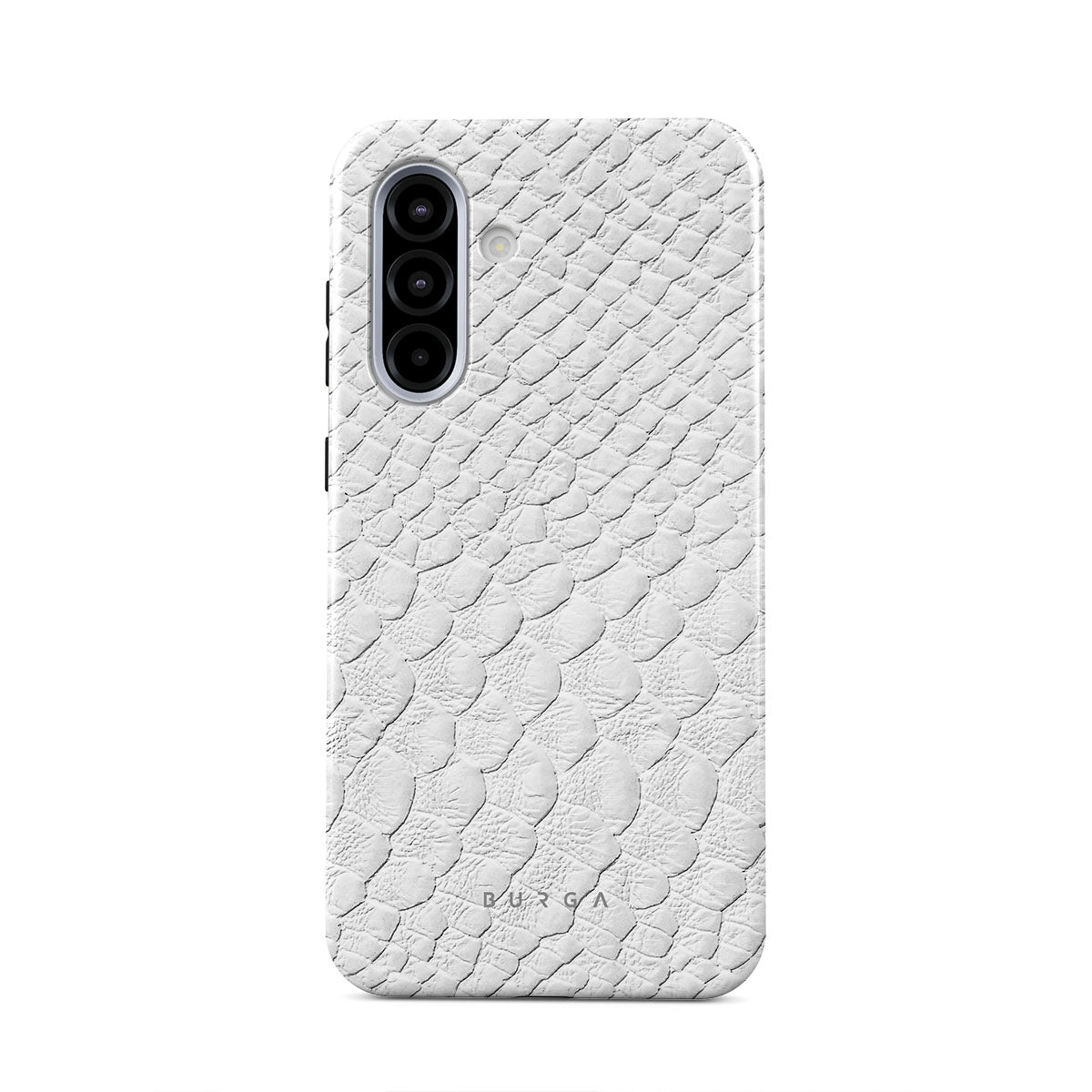 Glacial Desert Samsung Galaxy A36 5G phone case features snakeskin design in glacial white color. The dangerous animal print will add confidence and a touch of luxury to your style while transforming your phone into a fashion accessory.