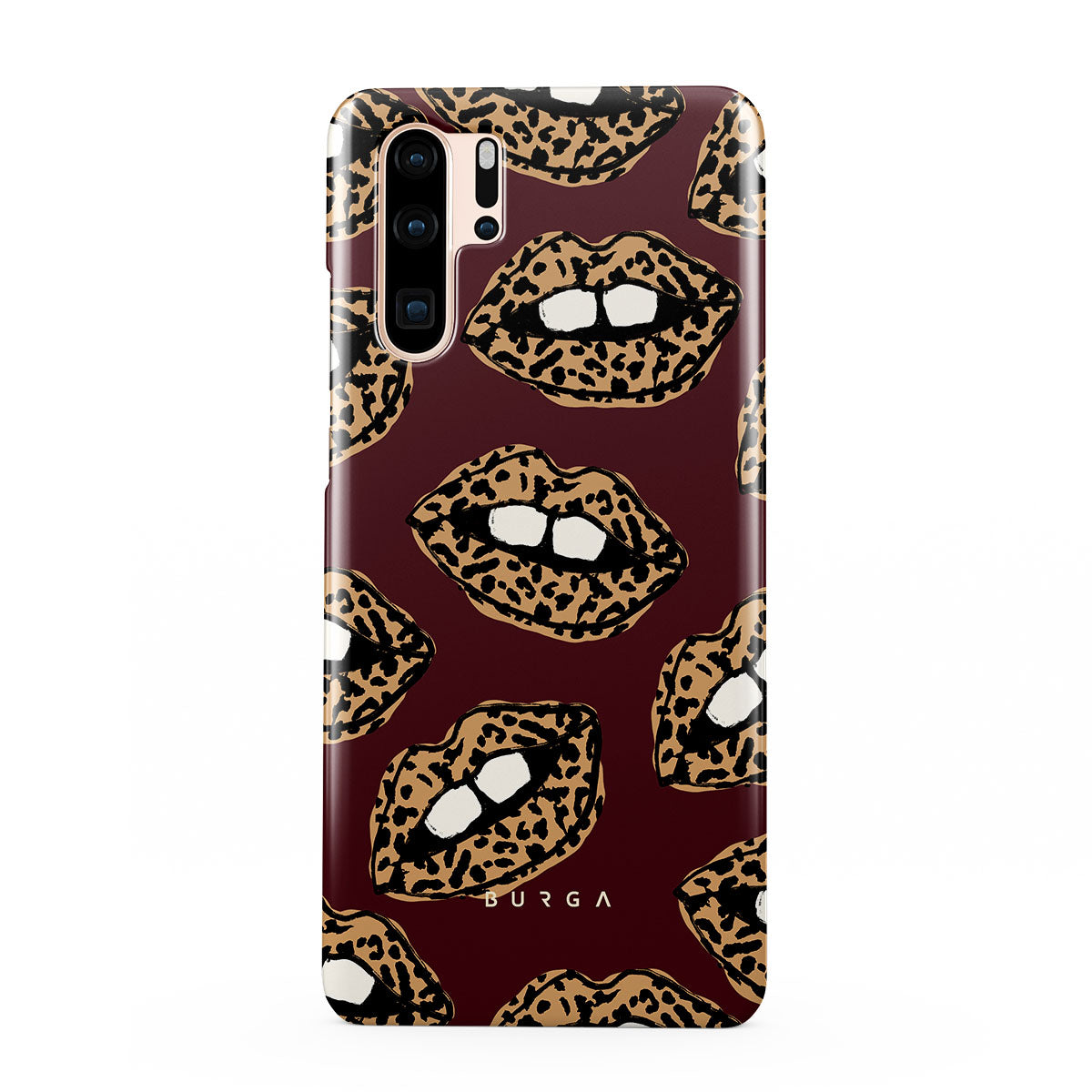 This design features: leopard print, lips, open lips, colored lips