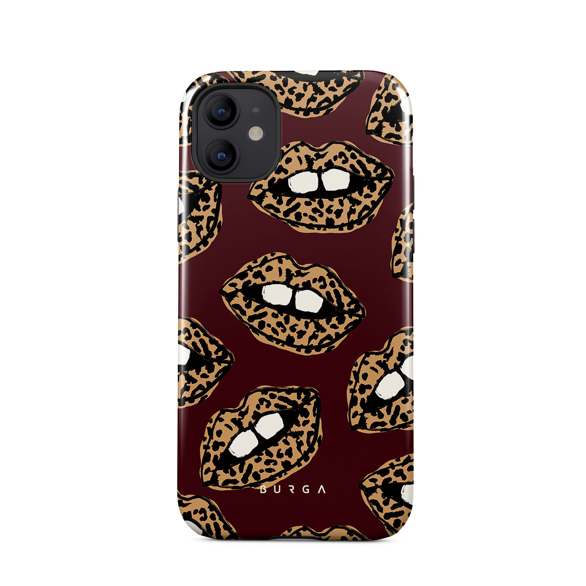 This design features: leopard print, lips, open lips, colored lips