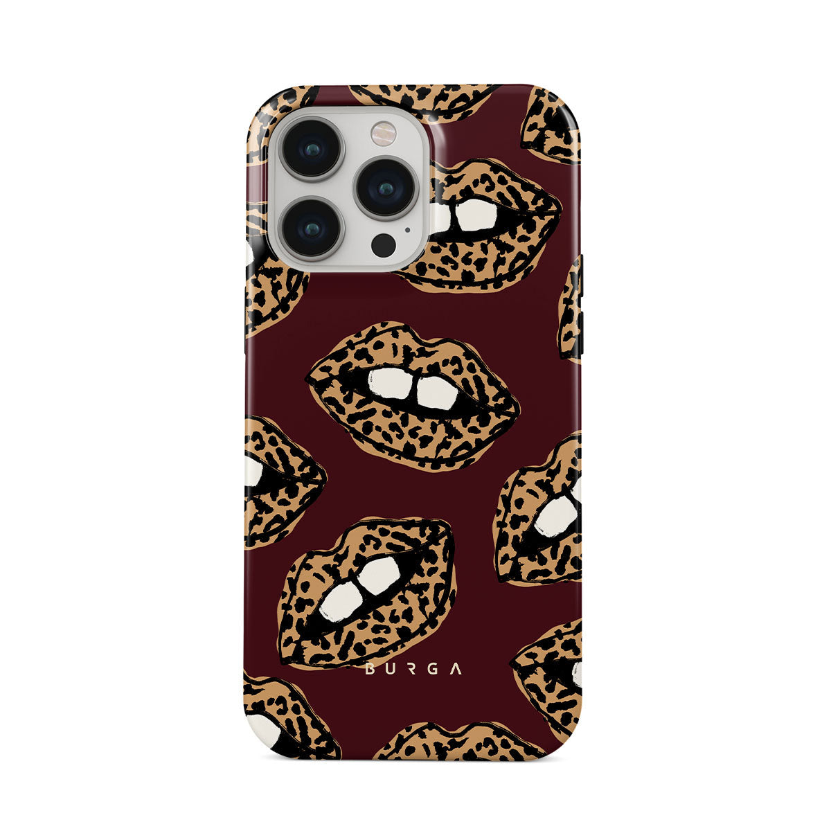 This design features: leopard print, lips, open lips, colored lips