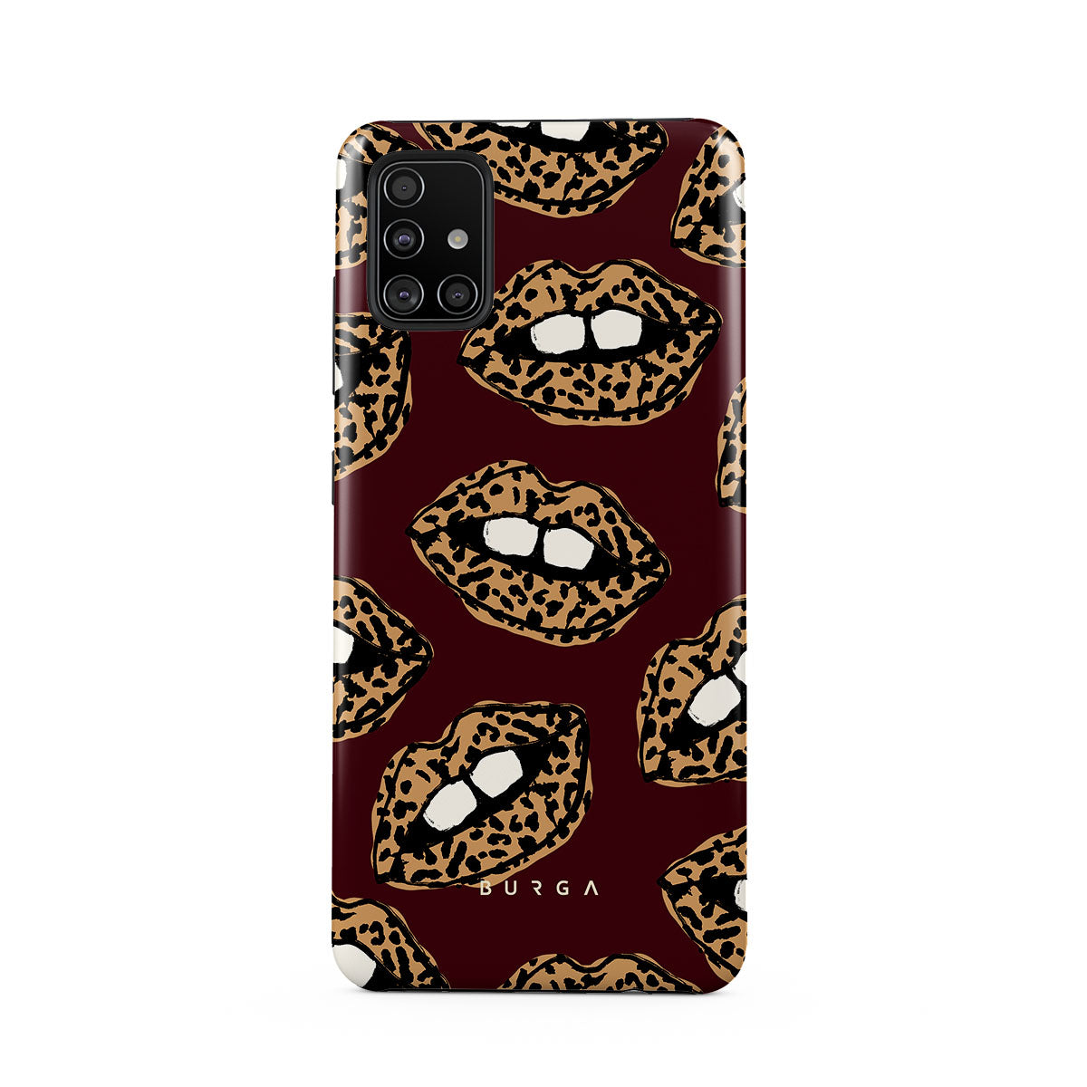This design features: leopard print, lips, open lips, colored lips