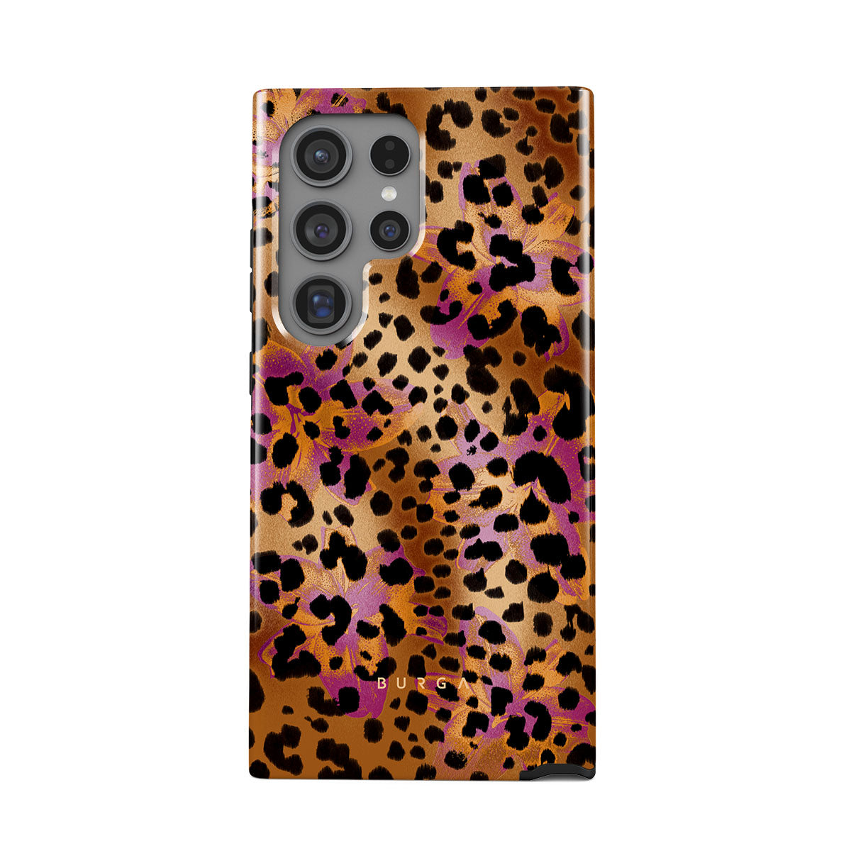 Leopard print dipped in purple mood swings. This Samsung Galaxy S24 Ultra phone case design is the queen of chaos.