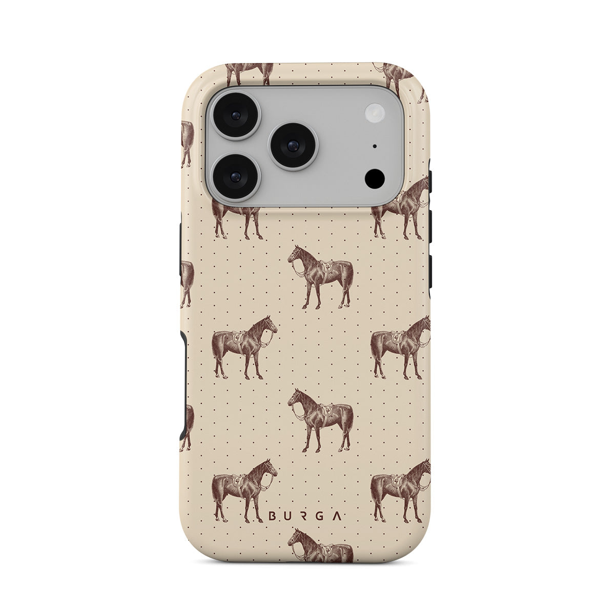 Life might feel like the Wild West sometimes, but your look can still be on point. With beautiful horses on a classic nude background, this iPhone 17 Pro phone case design is the one for those who ride free and stylish.