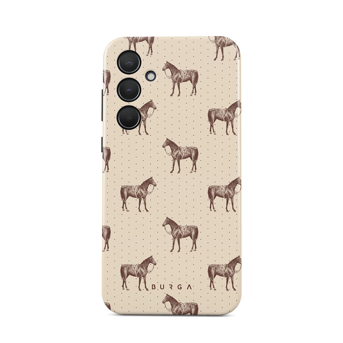 Life might feel like the Wild West sometimes, but your look can still be on point. With beautiful horses on a classic nude background, this Samsung Galaxy A35 phone case design is the one for those who ride free and stylish.