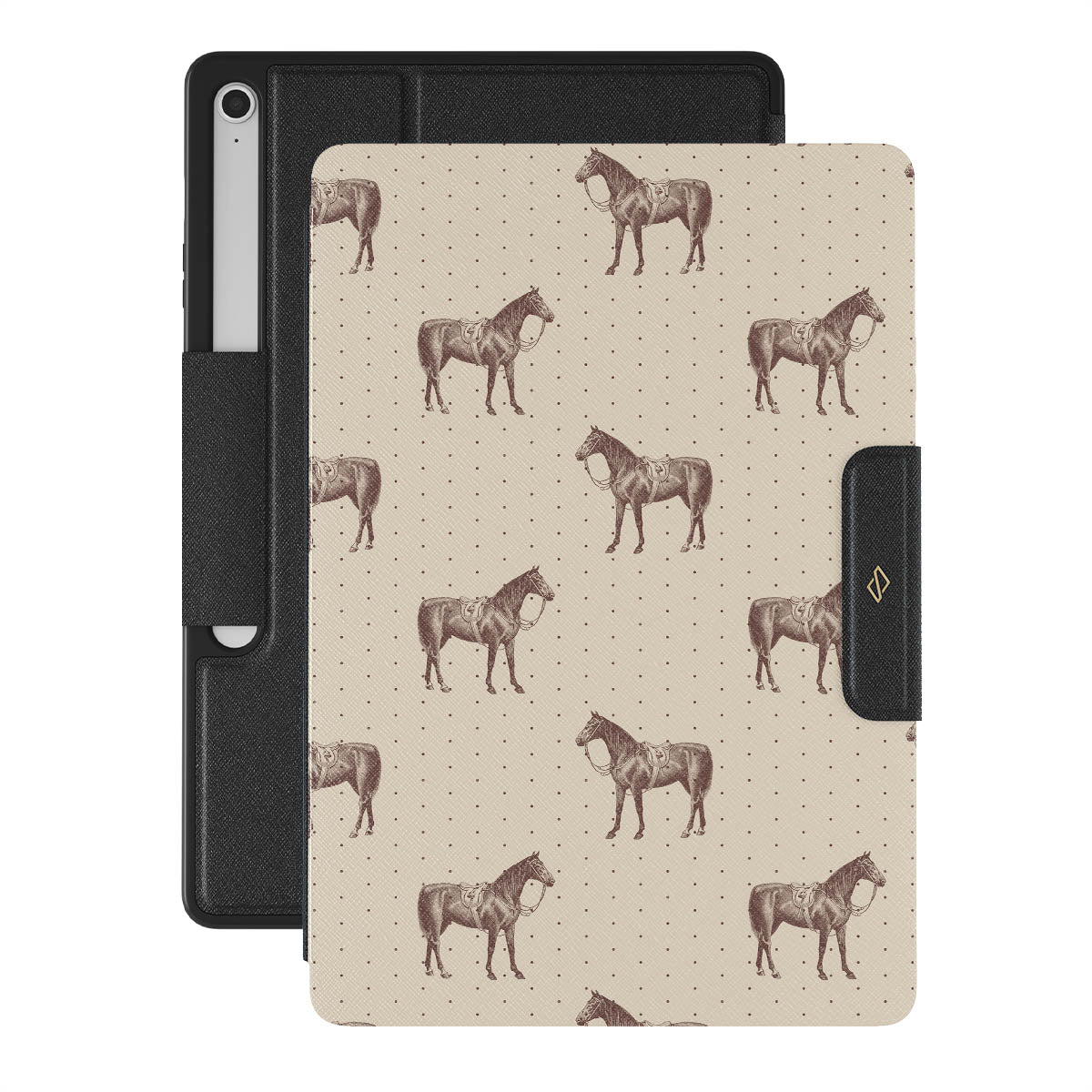 Life might feel like the Wild West sometimes, but your look can still be on point. With beautiful horses on a classic nude background, this Samsung Galaxy Tab S10+ FE folio case design is the one for those who ride free and stylish.