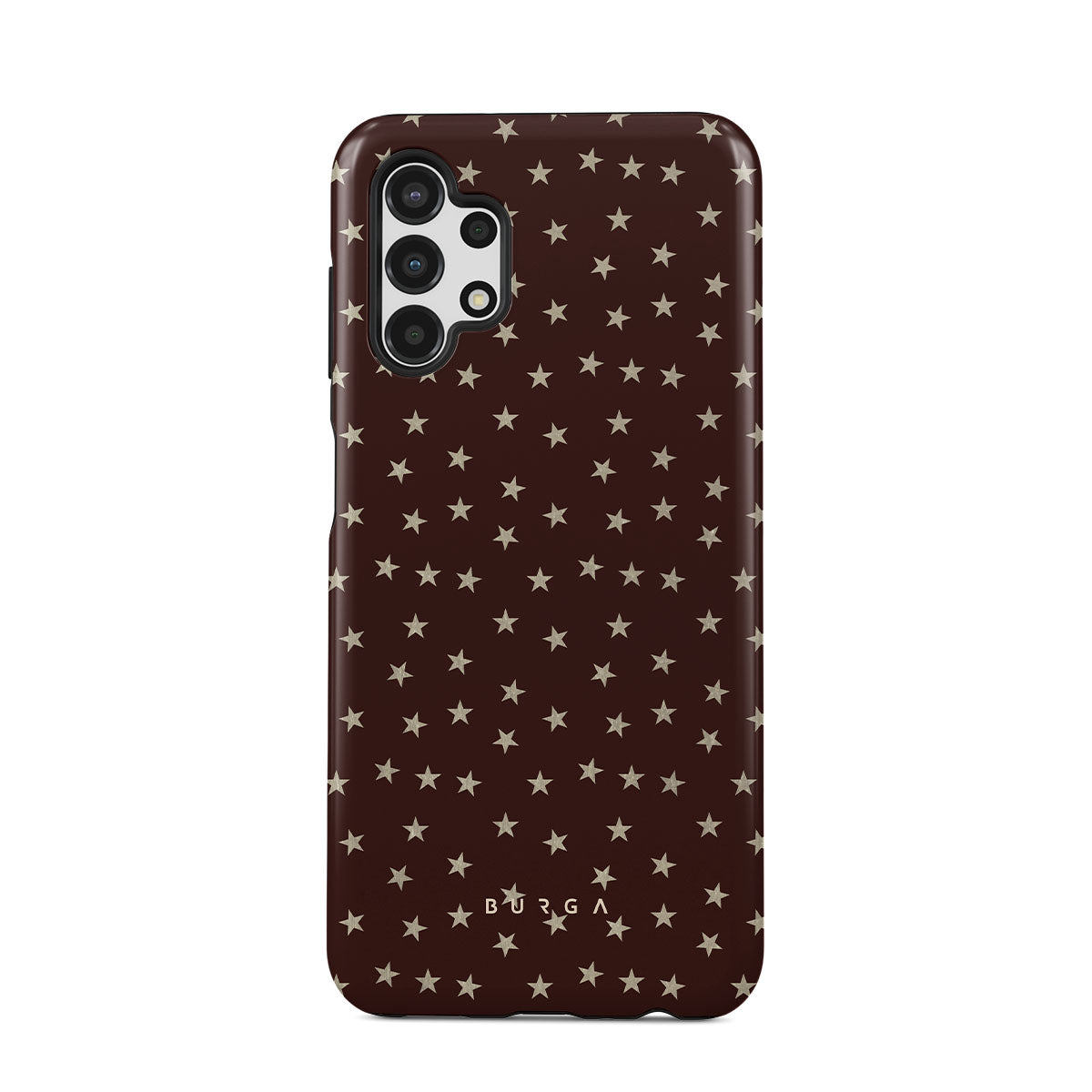Our Wonderland Samsung Galaxy A13 4G phone case design glistens like a frosty winter night, where the magic of the season lights up the sky. Step into a snowfall of stars with every glance.