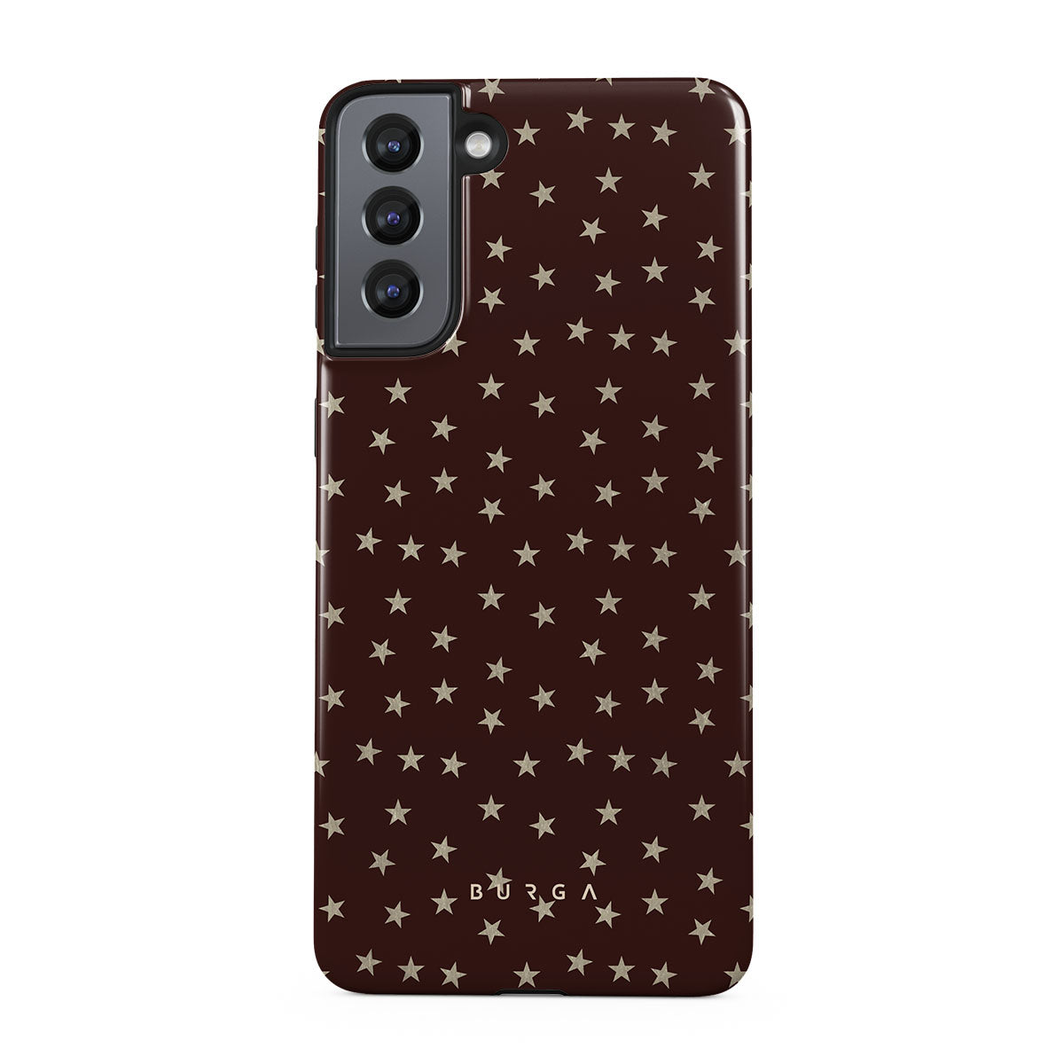 Our Wonderland Samsung Galaxy S21 phone case design glistens like a frosty winter night, where the magic of the season lights up the sky. Step into a snowfall of stars with every glance.