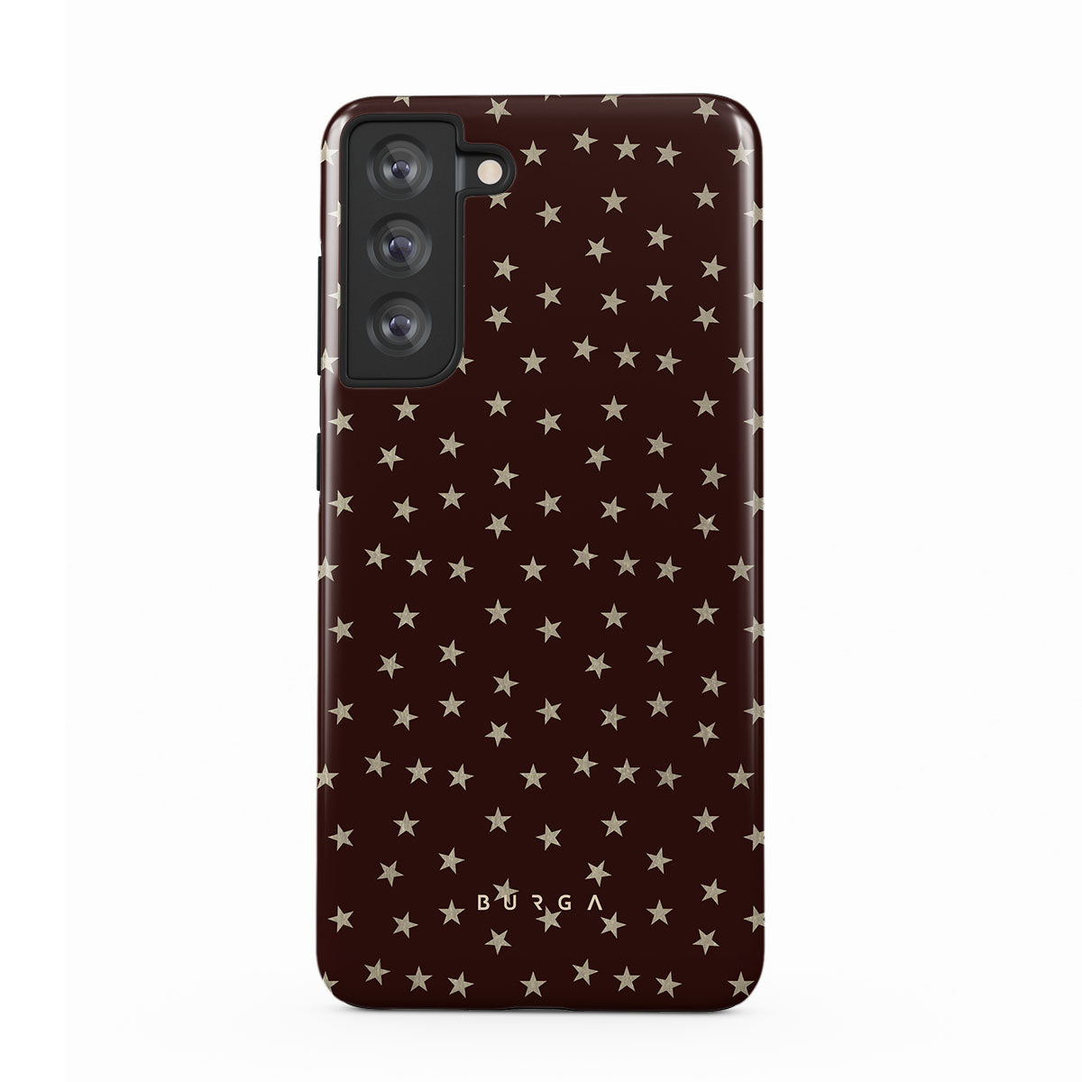 Our Wonderland Samsung Galaxy S21 FE phone case design glistens like a frosty winter night, where the magic of the season lights up the sky. Step into a snowfall of stars with every glance.