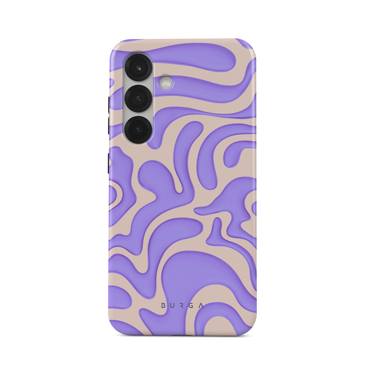 With a blend of retro and contemporary style, the Y2Kool Samsung Galaxy S25 phone case is the perfect accessory for anyone looking to make a statement. Drawing inspiration from the colorful and vibrant Y2K era, this case features pastel-toned metallic purple swirls that evoke memories of butterfly hair clips, platform shoes, and boy bands.