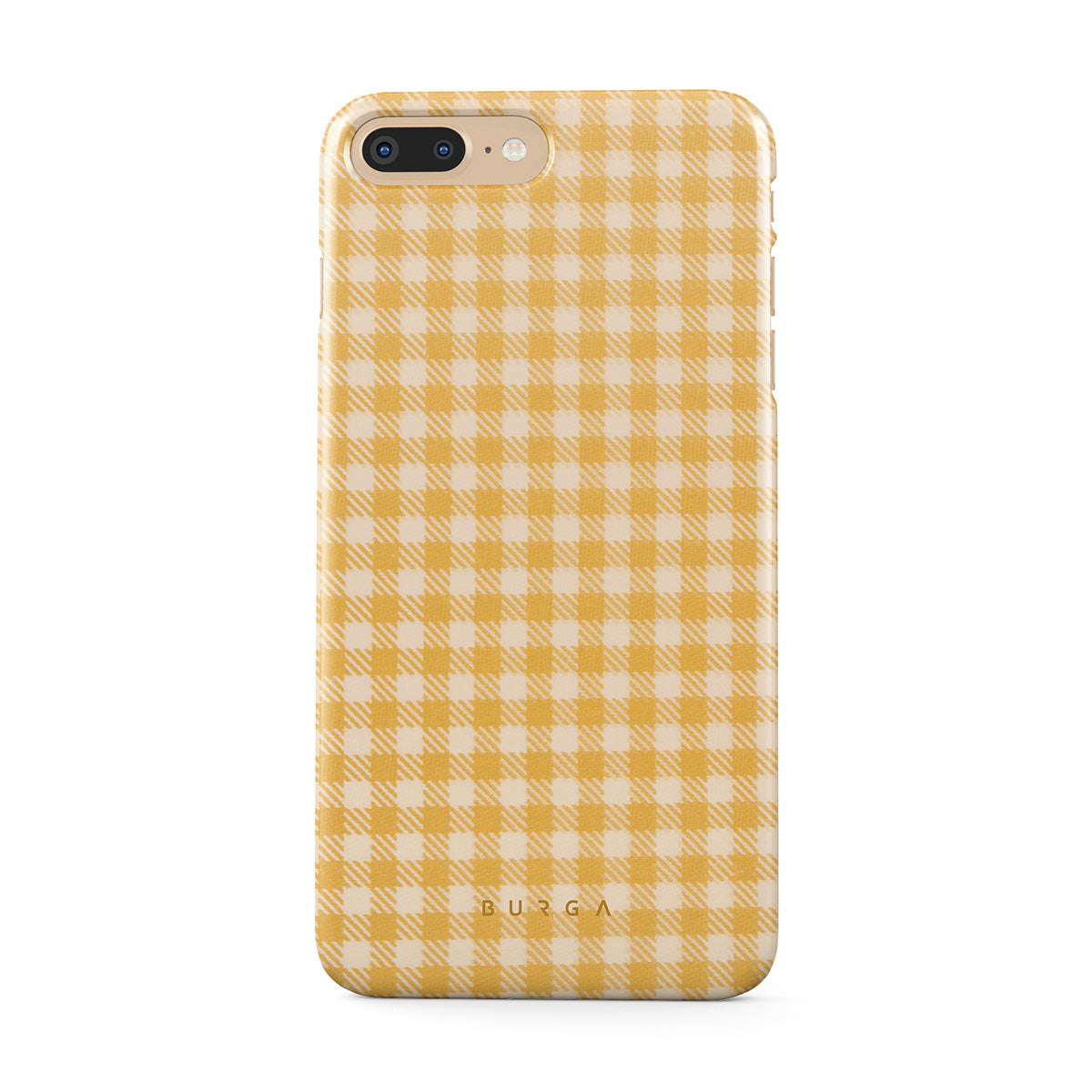 Always fashionable and always inviting, the Preppy Vichy fabric returns in our Tuscan Sun iPhone 7 Plus / 8 Plus phone case. The brightness and warmth of this enchanting yellow plaid design indeed remind us of the always generous Tuscan Sun. You can add a piece of this playful squares pattern with you while keeping your phone out of harm's way!