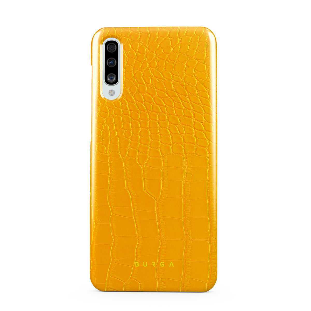 Our Canary Yellow Samsung Galaxy A50 phone case features a classic snake design reimagined and showcased in bright yellow. The new take on the dangerous animal print will add confidence and a touch of color to your style while transforming your protective phone case into a fashion accessory.