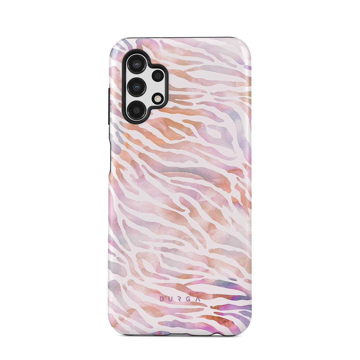 Sultry July Samsung Galaxy A13 4G phone case combines an exotic zebra pattern with the softest shades of pink. The Zebra pattern adds a touch of energy, while pinks will emphasize a softer side. This trendy phone case will keep your cellphone safe and sound from any falls or scratches.