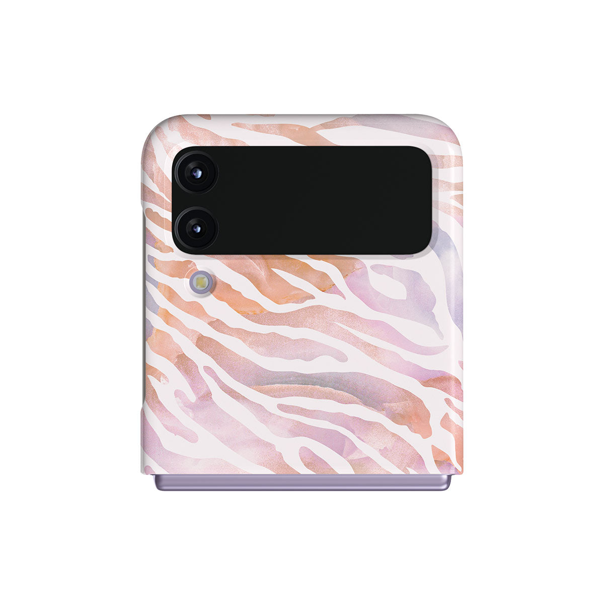 Sultry July Samsung Galaxy Z Flip 4 phone case combines an exotic zebra pattern with the softest shades of pink. The Zebra pattern adds a touch of energy, while pinks will emphasize a softer side. This trendy phone case will keep your cellphone safe and sound from any falls or scratches.