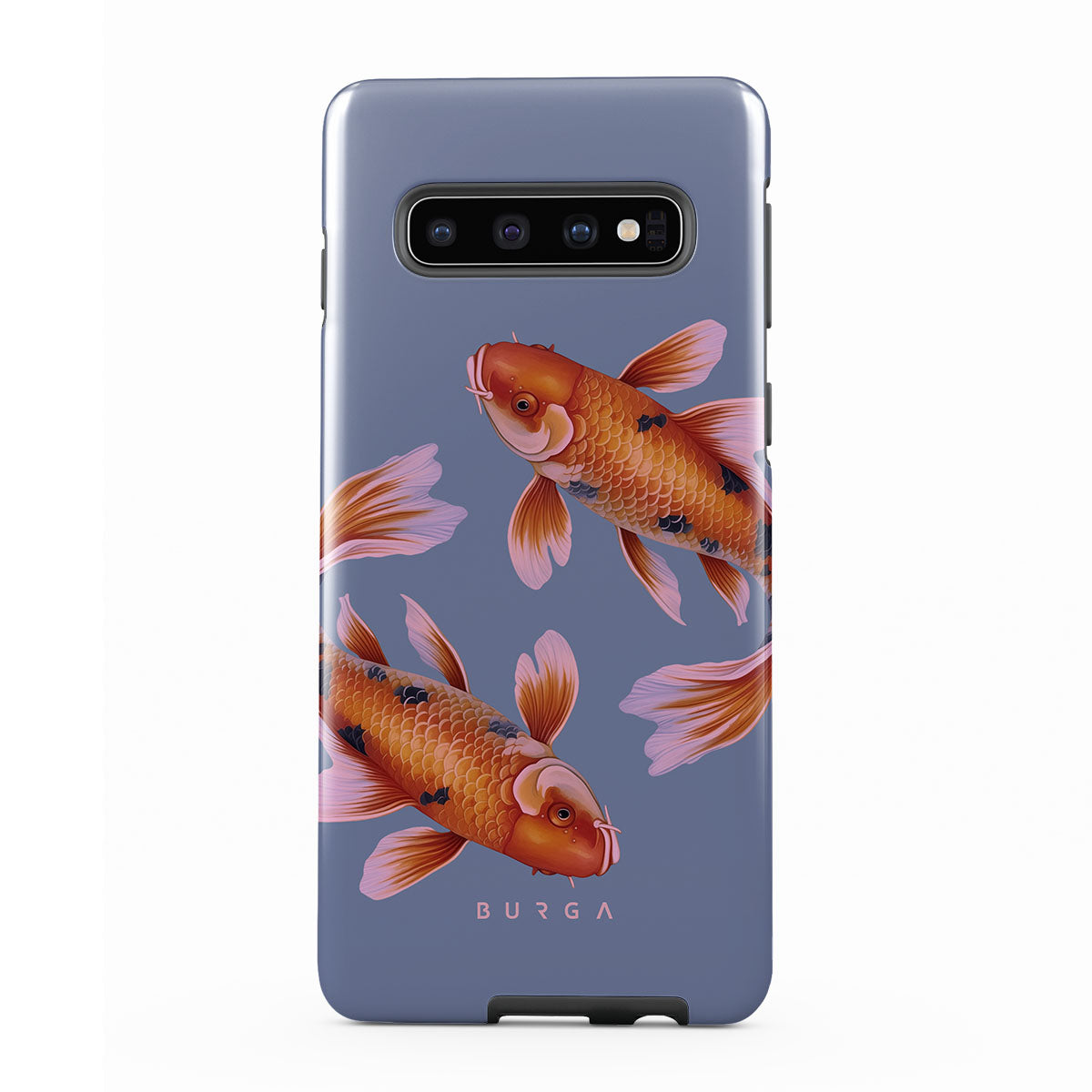 In the embrace of serene blue, the golden koi swirl, a symbol of life's fluid nature and the grace of going with the flow. Their dance is a serene meditation on the currents of destiny and the elegance of adapting with purpose. Discover our Zen Samsung Galaxy S10 4G phone case design.