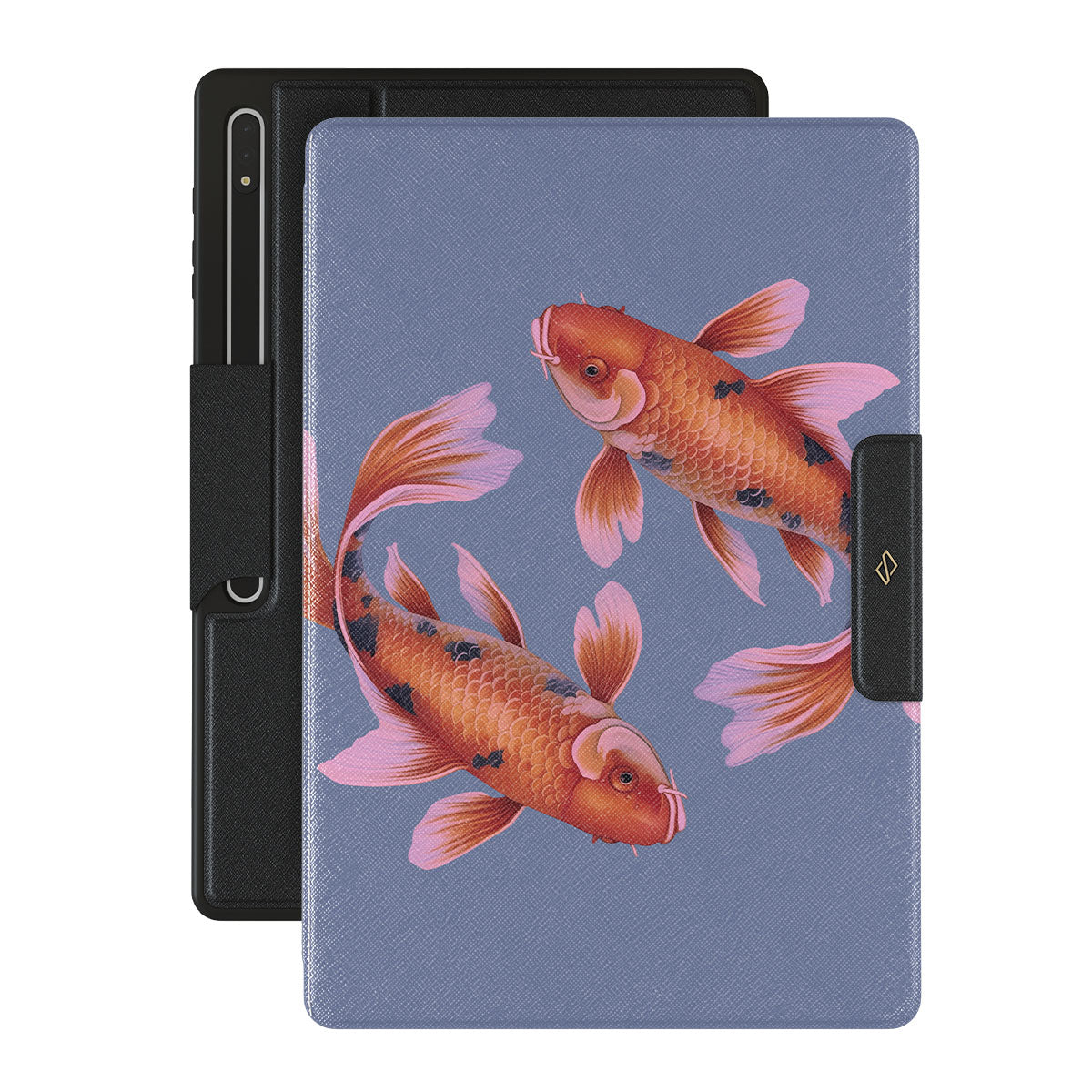 In the embrace of serene blue, the golden koi swirl, a symbol of life's fluid nature and the grace of going with the flow. Their dance is a serene meditation on the currents of destiny and the elegance of adapting with purpose. Discover our Zen Samsung Galaxy Tab S8 Ultra folio case design.