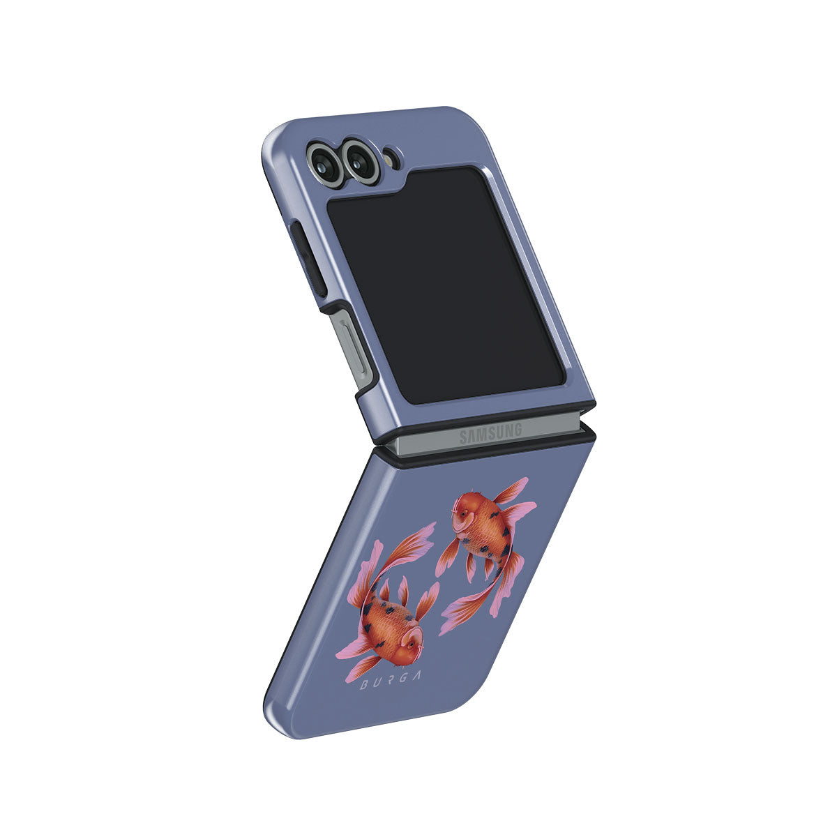 In the embrace of serene blue, the golden koi swirl, a symbol of life's fluid nature and the grace of going with the flow. Their dance is a serene meditation on the currents of destiny and the elegance of adapting with purpose. Discover our Zen Samsung Galaxy Z Flip 6 phone case design.